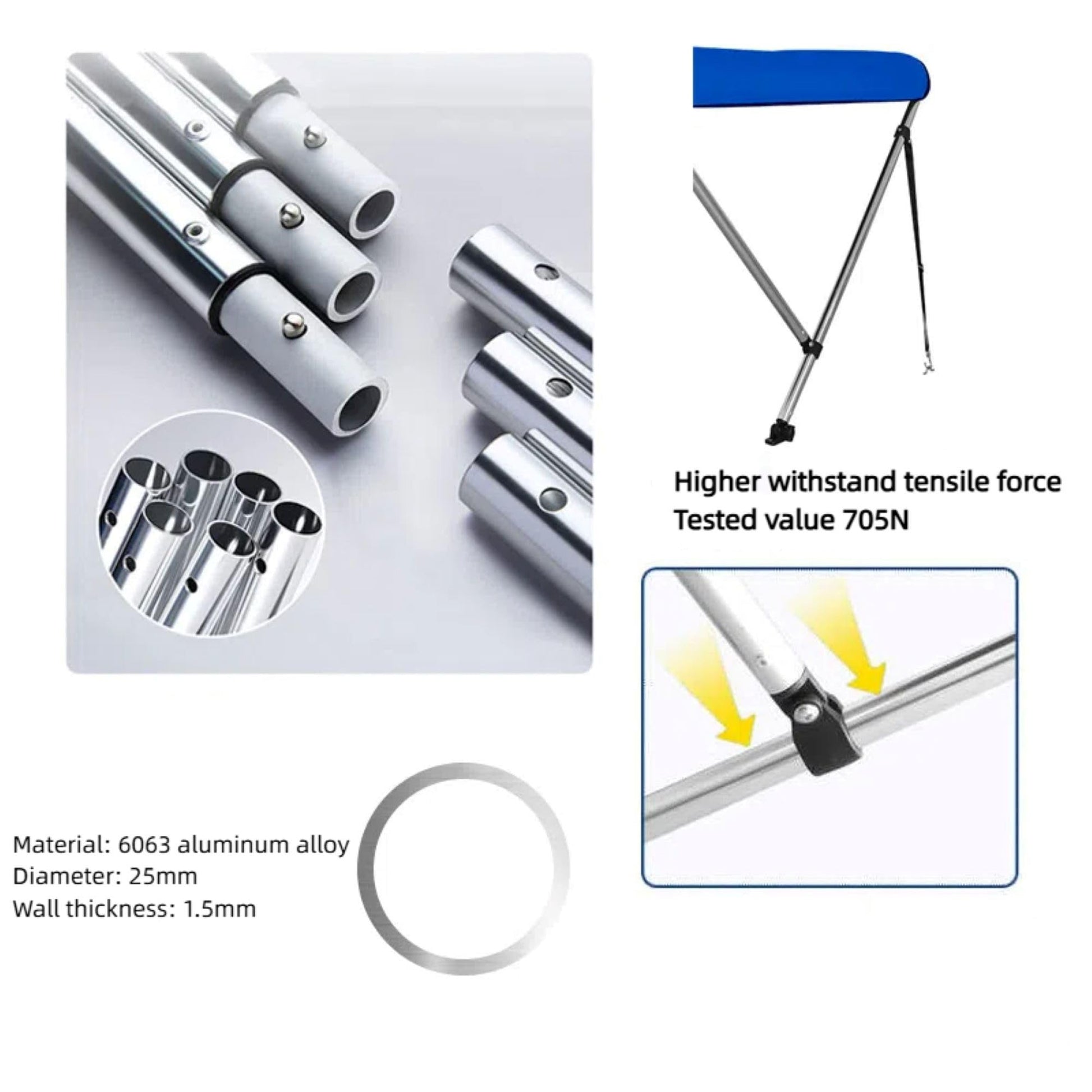 Capa para barco bimini 2BOW, cobertura para barco em tecido Oxford 600D com estrutura em tubo redondo de liga de alumínio, proteção solar à prova de chuva e água para barcos de assalto, navios e iates