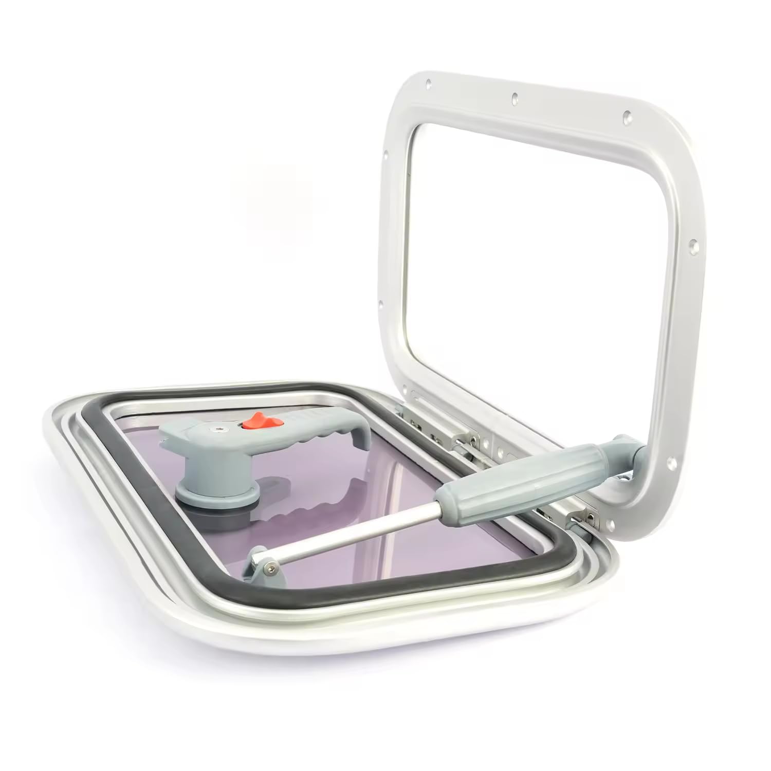- This square hatch features a high-quality aluminum alloy cast frame with a precision anodized surface, ensuring it is both lightweight and exceptionally resistant to salt spray corrosion in marine environments. The anodized treatment enhances durability, making it ideal for long-term use at sea while maintaining structural integrity and performance